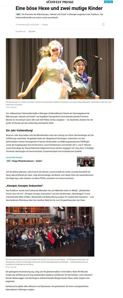 Und hier noch der Pressebericht zu unserer Aufführung in Gomaringen,